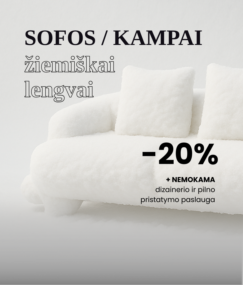 20% nuolaida visoms sofoms ir kampams + NEMOKAMA dizainerio ir pilno pristatymo paslauga