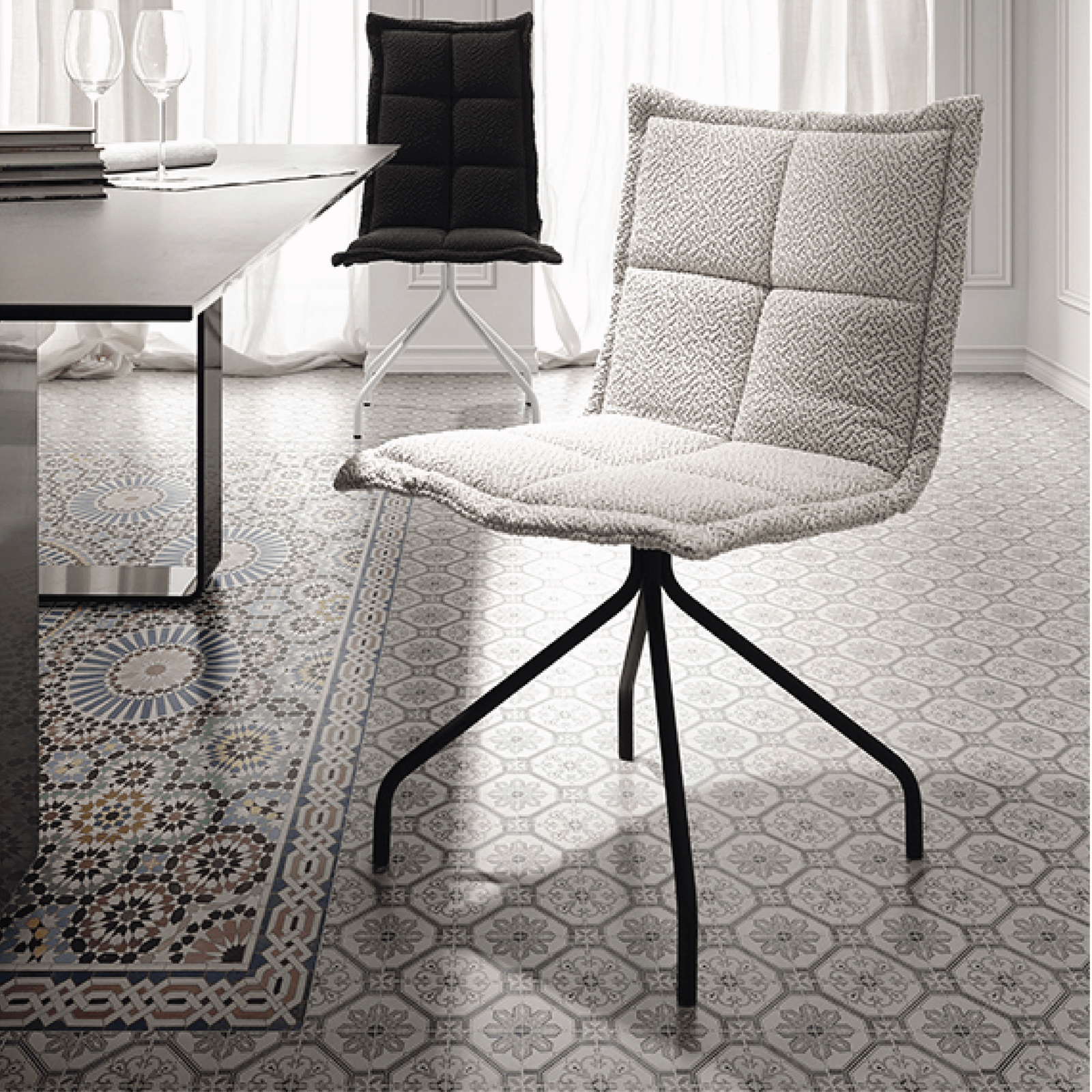 • Pritaikomumas: Dėl savo aptakaus ir modernaus silueto šios kėdės puikiai dera tiek prie minimalistinių, tiek prie prabangių valgomojo stalų.