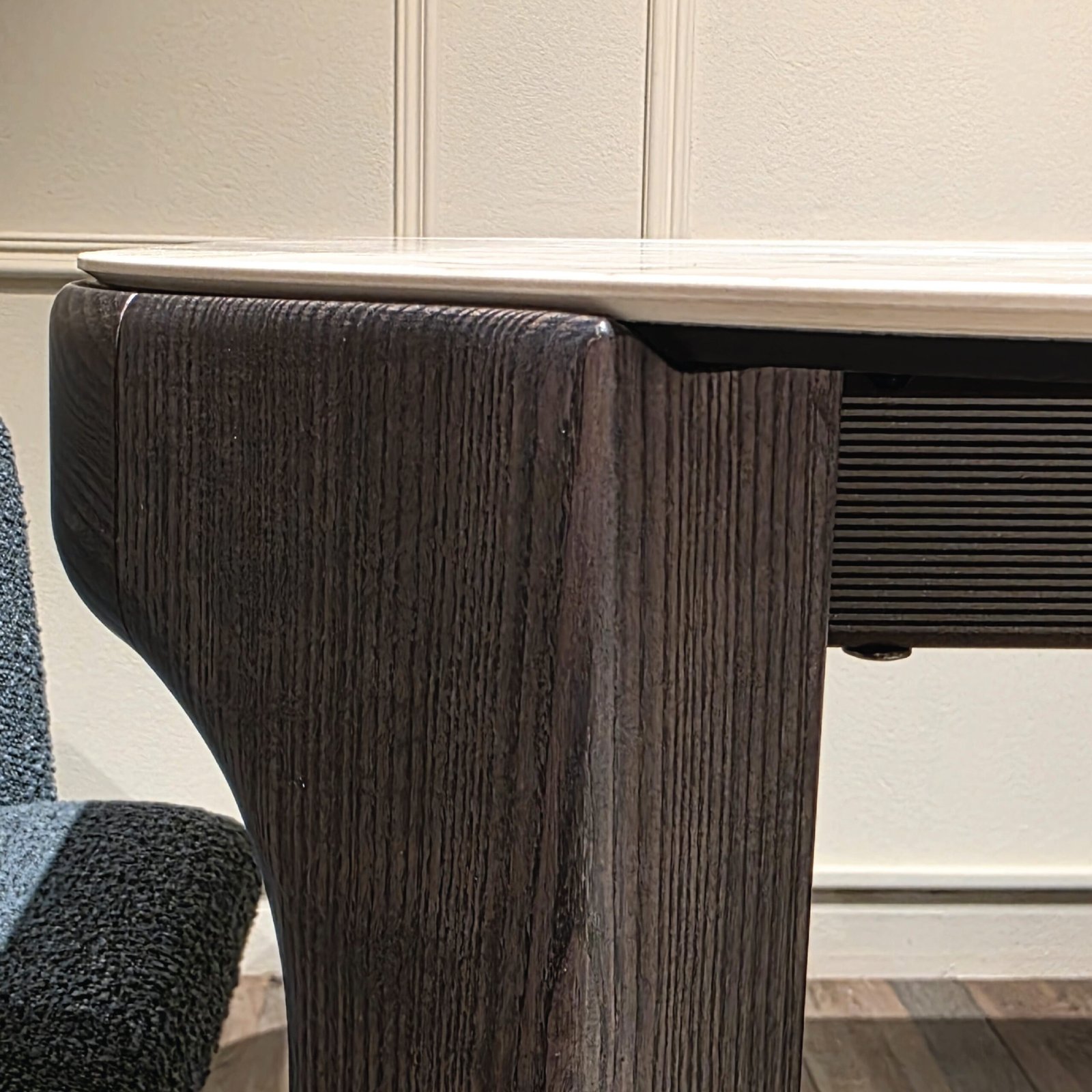 Stalo konstrukcija: metalas + ąžuolo masyvas ( tamsus šokoladas )