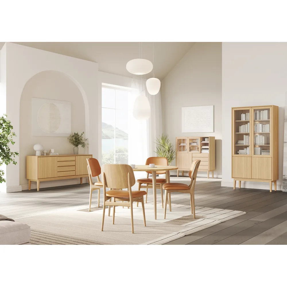 „BROHOLM” – elegantiška daniško dizaino komoda, pagaminta iš masyvaus ąžuolo, su grotelių durelėmis. Šis baldas puikiai dera prie valgomojo ar svetainės interjero, suteikdamas tiek stilingą išvaizdą, tiek funkcionalią saugojimo erdvę.