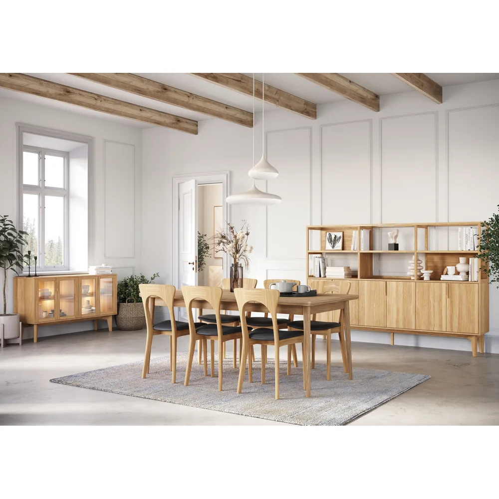 „CASØ 551″ – elegantiška daniško dizaino komoda, pagaminta iš masyvaus ąžuolo, su stiklinėmis durelėmis. Šis baldas puikiai dera prie valgomojo ar svetainės interjero, suteikdamas tiek stilingą išvaizdą, tiek funkcionalią saugojimo erdvę.