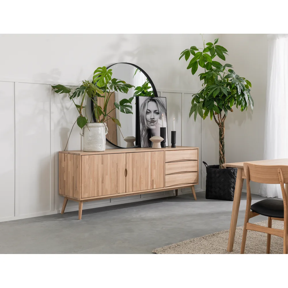„LINDØ” – elegantiška daniško dizaino komoda, pagaminta iš masyvaus ąžuolo, su medinėmis durelėmis. Šis baldas puikiai dera prie valgomojo ar svetainės interjero, suteikdamas tiek stilingą išvaizdą, tiek funkcionalią saugojimo erdvę.