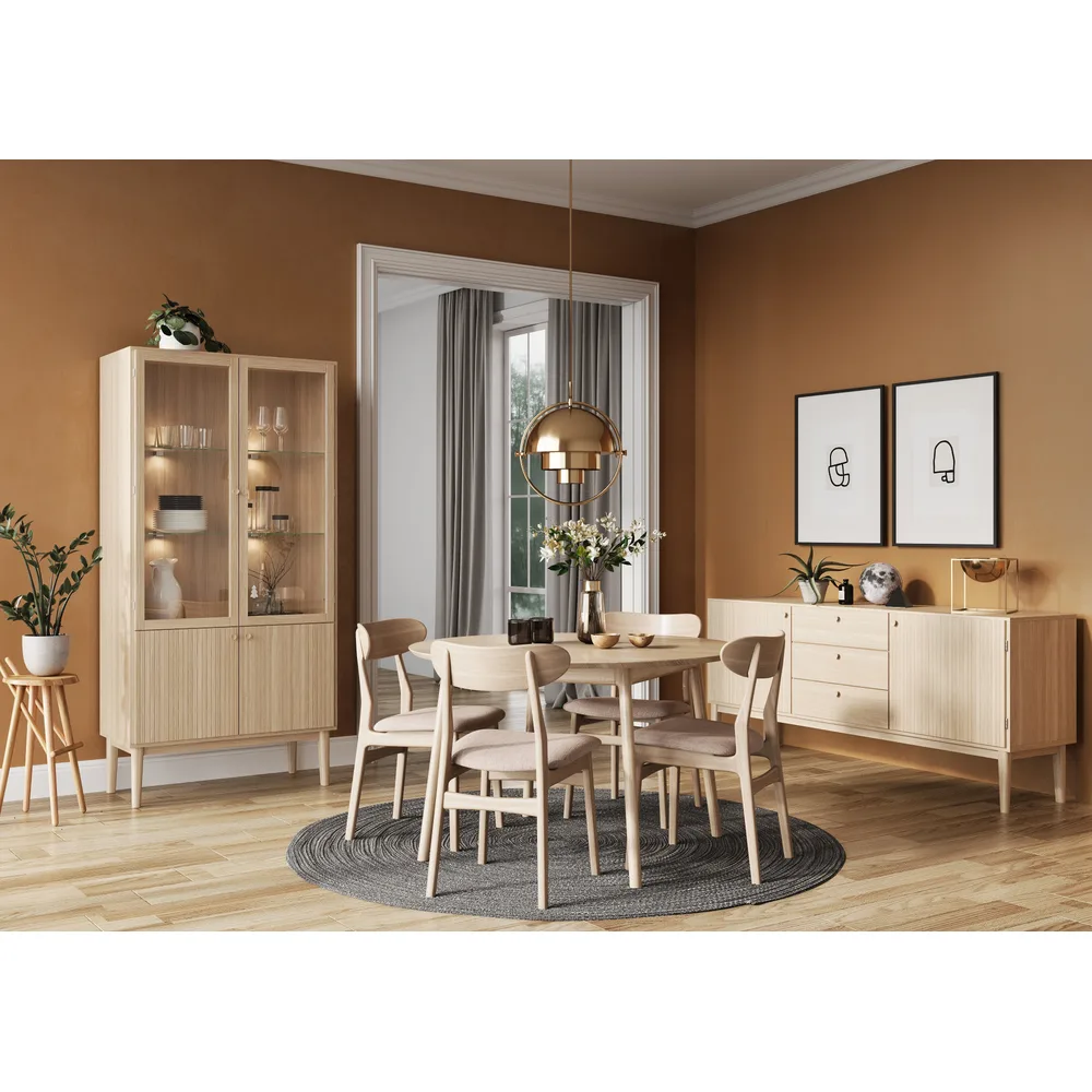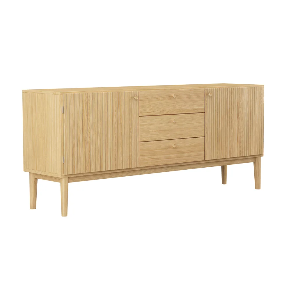 „LUNA” – elegantiška daniško dizaino komoda, pagaminta iš masyvaus ąžuolo, su medinėmis durelėmis. Šis baldas puikiai dera prie valgomojo ar svetainės interjero, suteikdamas tiek stilingą išvaizdą, tiek funkcionalią saugojimo erdvę.