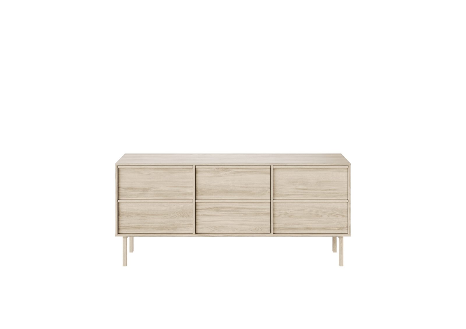 Ši „Nellie“ komoda – tai puikus pavyzdys, kaip didelis baldas gali išlikti lengvas ir grakštus. Švarios, charakteringos linijos ir šešių stalčių simetrija sukuria tvarkos ir modernios prabangos pojūtį bet kuriame kambaryje.